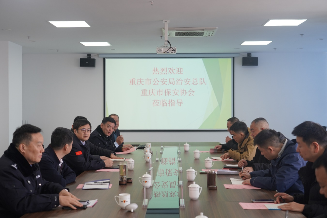 近日,重慶市保安協(xié)會會長李永成、重慶市公安局治安總隊(duì)保安監(jiān)管大隊(duì)副大隊(duì)長安硯坤一行6人,在山東省公安廳治安總隊(duì)二級高級警長高懷仕、山東省保安協(xié)會副秘書長趙愛民陪同下,到淄博市保安服務(wù)公司調(diào)研并進(jìn)行座談交流。淄博市公安局治安支隊(duì)副支隊(duì)長、四級高級警長孫元乾,淄博市保安協(xié)會會長、淄博市保安服務(wù)有限公司黨委書記、董事長付志欣陪同考察。