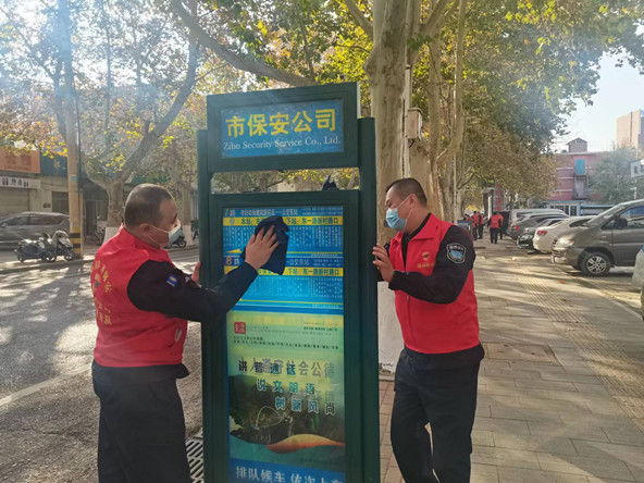 隨后,志愿者們又來到駐地附近的公共道路開展公交站牌和公益廣告牌衛(wèi)生清理工作,通過開展系列志愿服務活動,改善城市環(huán)境的同時,引導廣大市民提高環(huán)衛(wèi)意識,為營造整潔有序、環(huán)境優(yōu)美的城市環(huán)境貢獻了淄保力量。