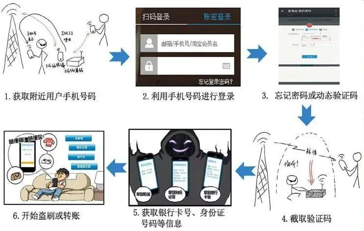 柳州警方立即成立專案組,將3名嫌疑人抓捕歸案。據(jù)交代,嫌疑人雷某和雷某斌負(fù)責(zé)利用嗅探設(shè)備竊取受害人手機(jī)信息,接收驗(yàn)證碼短信,分析機(jī)主身份證綁定的支付寶賬號(hào)和銀行卡號(hào),徐某則負(fù)責(zé)“加工”竊取來(lái)的信息,并在第三方支付平臺(tái)盜刷。從而在沒(méi)有接觸受害人手機(jī)、銀行卡且事先不知道其密碼的情況下,通過(guò)“隔空取物”的方式取走受害人銀行卡里的資金。